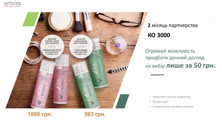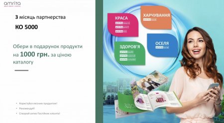 - В течении второго.месяца разовыми закупками набрать в сумме КО 3 000 бал. И получить возможность выбрать подарок до 1 000 грн+ Кэжбек 75 грн.