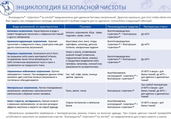 Экопродукты® «Шанталь»® by amrita® предназначены для удаления бытовых загрязнений.