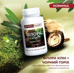 Пижма оказывает желчегонное, противомикробное, противоглистное, фитонцидное, вяжущее и противовоспалительное действие. Применение пижмы обыкновенной дает противомикробный и противовоспалительный эффект. Показан при лямблиозе кишечника и желчевыводящих путей, энтеробиозе, аскаридозе, энтероколите, метеоризме и вялом пищеварении. Повышает кислотность желудочного сока, улучшают аппетит и переваривание пищиСемена тыквы помогают избавиться от глистов и паразитов, улучшают работу кишечника благодаря клетчатке, стимулирующей перистальтику. Повышает иммунитет, снижает уровень так называемого плохого холестерина.  Нормализует пищеварение, очень полезно для здоровых обменных процессов и быстрого усвоения ценных веществ.Экстракт тысячелистника оказывает кровоостанавливающее, противовоспалительное, бактерицидное, антиаллергическое действие, раздражает вкусовые рецепторы и усиливает секреторную активность желудка, расширяет желчные протоки и увеличивает желчевыделение, повышает диурез.Экстракт золототысячника стимулирует секрецию желез желудочно-кишечного тракта, повышает желчевыделение, усиливает перистальтику кишечника, сокращение мышц матки, оказывает противовоспалительное, болеутоляющее, легкое слабительное и глистогонное действия.Лист ореха оказывает тонизирующее, общеукрепляющее действие, улучшает обмен веществ при болезнях кожи, способствует растворению инфильтратов, заживлению гнойных ран, оказывают вяжущее, оказывает слабительное и противоглистное действие.Семена перекоти-поле наделены обезболивающими, слабительными, антимикробными, инсектицидными  качествами.Соплодия ольхи черной обладают вяжущими, дезинфицирующими, противовоспалительными, кровоостанавливающими свойствами. Применяется в профилактических целях в ряде заболеваний – дизентерия, гастрит, язвенная болезнь желудка, если воспалилась толстая и двенадцатиперстная кишка, желчный пузырь.Листья мяты перечной имеют спазмолитическое, противовоспалительное, противомикробное, успокаивающее, обезболивающее, потогонное, противосудорожное, ранозаживляющее, мочегонное, тонизирующее, дезодорирующее, отхаркивающее, освежающее и желчегонное свойства; расширяет сосуды головного мозга и сердца, улучшает аппетит и слюноотделение, усиливает секрецию желез ЖКТ и печени, оказывает вяжущее действие.Экстракт вахты оказывает желчегонное, седативное и слабое гипотензивное действие. Препараты из листьев мяты перечной повышают секрецию пищеварительных желез, возбуждают аппетит, угнетают процессы гниения и брожения в пищеварительном канале, снижают тонус гладких мышц кишечника, желче- и мочевыводящих путей, усиливают выделение желчиТрава полыни горькой возбуждает аппетит, стимулирует функцию желез органов пищеварения, повышает секрецию желчи, панкреатического и желудочного соков, оказывает противовоспалительное, антисептическое действие. Усиливает эффект совместный прием:  ФЛОРА КЛИН + ЧЕРНЫЙ ОРЕХ ускоряет очищение организма от грибковых и бактериальных инфекций, простейших и гельминтов, а также продуктов их распада. Эффективен при бактериальных гнойничковых поражениях кожи и слизистых (фурункулез, акне и т.п), уменьшает количество вредной микрофлоры при грибковых заболеваниях (в т.ч. кандидозе). Обладает онкопротекторным, антиб