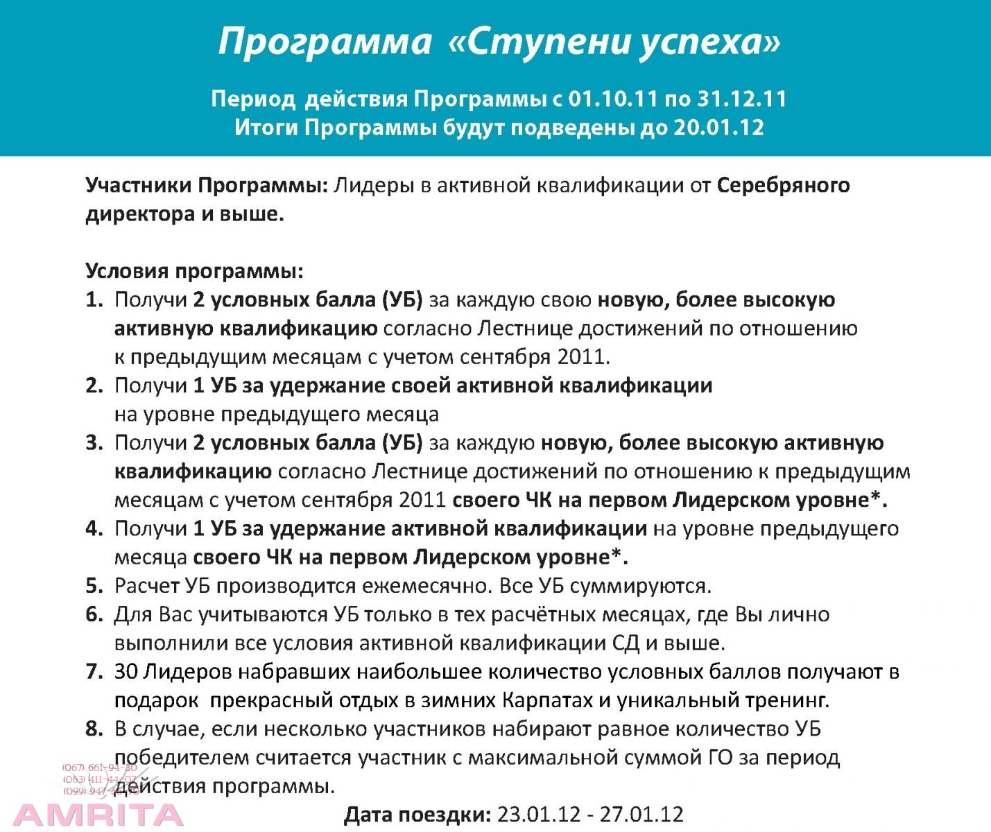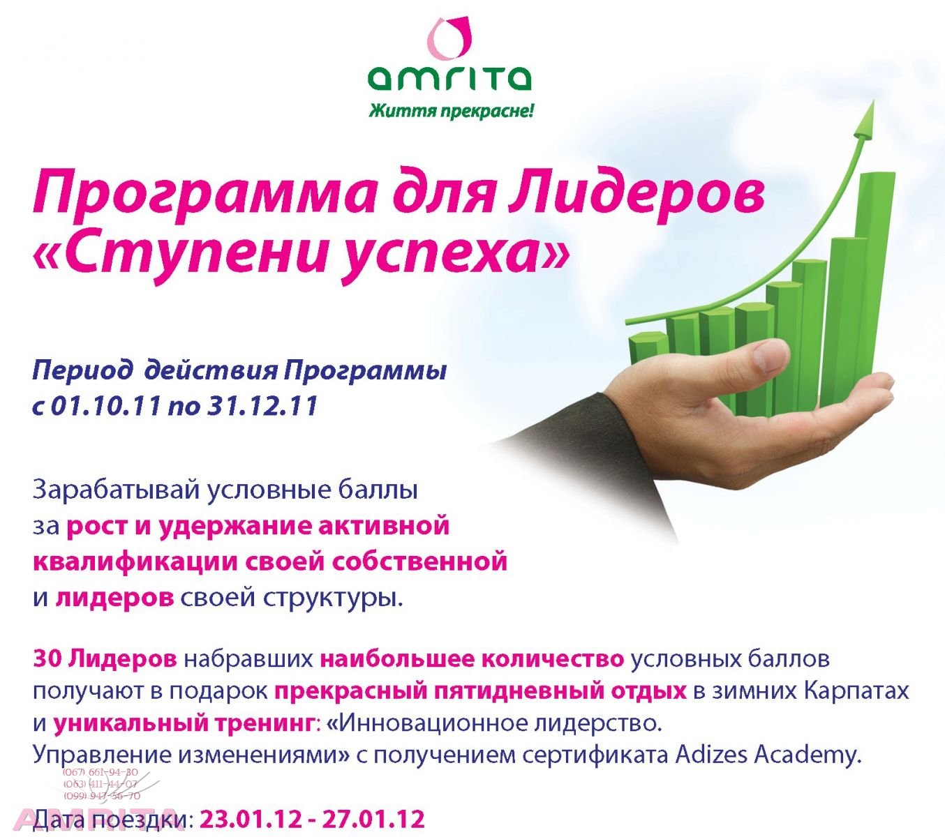 <Бизнес-тренер международного класса с 1996 года, профессиональный сертифицированный коуч PCC с 2003 года (1000 часов индивидуальной коучинговой практики. -Как попасть в зимние карпаты, на бесплатный пятидневный отдых? 1. Надо быть членом клуба Амрита: И выполнить не сложные условия квалификации: 30 победителей акции набравшие наибольшее количество баллов смогут бесплатно отдохнуть в зимних карпатах.
