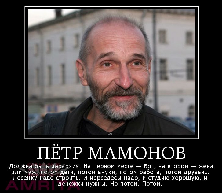 Ко дню рождения талантливого человека AdMe.ru собрал 30 уроков Петра Мамонова о самом главном. Я ничего не одобряю и не порицаю, у меня дел по горло, своей грязи. Если я очищу мир на маленькое пятнышко себя, миру этого хватит. Спаси себя, и хватит с тебя. Любовь - это не чувство, это добродетель. Это количество добра, которое мы делаем, невзирая на отдачу. Когда ты делаешь просто так. Вот бабуля в метро, уступи ей место. Не надо к ней чувством пылать, делать надо, делать. Любое, любое дело мимо любви - это мимо Бога. А мимо Бога - это мимо вообще.