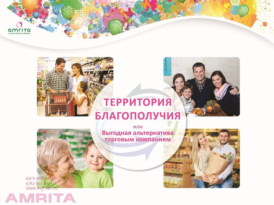 Компания "Амрита"- это територия Добра. В компании "Амрита", не обманывают. В компании "Амрита"- Люди обьединяются для достижения Цели: "Стать Здоровым, Красивым и Благополучным" Госпожой или Господином Своей Територии Добра.