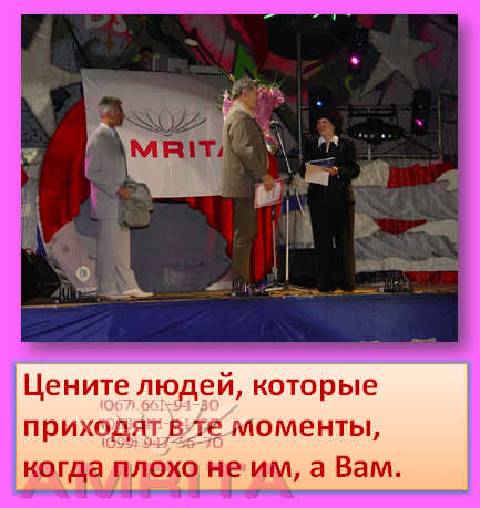 Компания "Амрита", дает Вам возможность быть не униженным в этом МИРЕ! Ко муто иметь дополнительный заработок и получая дополнительно к основному доходу или помощь от спонсора, стать менее зависимым человеком в нашем так стремительно меняющимся мире! Кто то имеет Большую Любящую Душу и для него это станет основной работой! Так как Любовь невозможно раздать до конца - чем больше отдаешь, тем больше остается. Поэтому как в настоящей дружбе нет разочарований, так в настоящей Любви нет обид. И эти Люди которые научились Любить Себя, Жизнь, а значит и Людей добиваются неимоверных успехов в компании "Амрита". Они не унижены тяготами жизни, они Любят, Они Счастливы, Работают и Путешествуют с Любовью! Они не ищут партнеров, их жизнь, поступки и Любовь к Людям притягивает таких же как они порядочных Людей и вместе стоят Лучшую Жизнь!