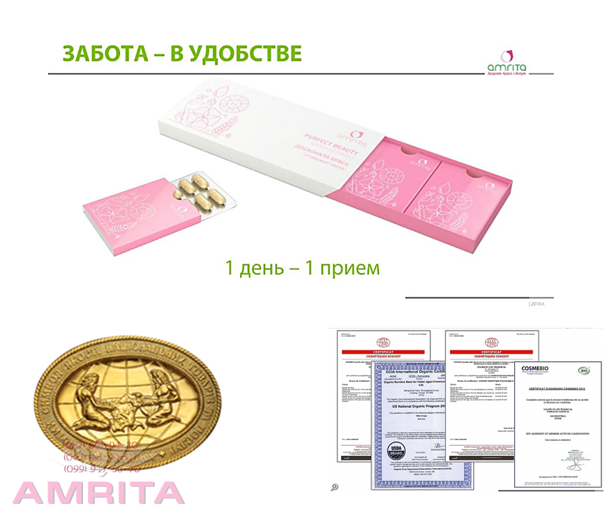 Всемирно известная голливудская актриса Джулия Робертс опубликовала сенсационное послание. В нем она не просит, умоляет всех женщин занять активную позицию, и перестать уделять внимание только внешней красоте, в ущерб себе и своему естеству. Вот ее слова: Джулия Робертс опубликовала сенсационное послание Совершенство — это болезнь многих наций. Мы покрываем наши лица тоннами макияжа. Мы регулярно колем себе ботокс и морим себя голодом для «идеального размера». Мы пытаемся исправить то, что совершенно в этом не нуждается. А то, о чем мы должны заботиться в первую очередь, остается без нашего внимания. Знаете, что это? Это наша душа. Душа, которая нуждается в тщательной заботе и уходе. Пришло время заняться ею. Скажите честно, как вы можете ждать, что кто-то вас полюбит, если вы сами себя не любите? Перекраивая свою внешность, разве можно сказать, что вы довольны собой? Нет. Я хочу, чтобы вы четко поняли: не имеет значения, как ты выглядишь снаружи, если ты абсолютно пуст внутри. Сегодня я хочу заявить всем: я больше не буду мириться с макияжем. Я не хочу делать макияж, потому, что я устала носить чужое лицо. Настало время сбросить маски. Я знаю, что у меня есть морщины, но я хочу их видеть. Ведь это я — настоящая. Я хочу, чтобы вы принимали меня такой, какая я есть. Мир сегодня помешался на внешности. Вы даже представить себе не можете обороты компаний, которые вложили в ваши головы мысли о том, что вам надо вкладывать финансовые средства в то, чтобы оттянуть неизбежные признаки старения, прибегая к нездоровому и неестественному применению антивозрастных продуктов. Принципы красоты 21-го века четко можно определить как ненормальные. Это красота на стероидах, которая, как вирус, распространяется по всему миру. Это ужасно! Вы понимаете, что искусственная эстетика правит миром, держа нас запертыми в тюрьме своих иллюзий по поводу внешности? Вместо того, чтобы жить и следовать нашему естеству, мы вынуждены исповедовать те каноны красоты, которые нам навязаны. Но знаете что? Я устала от этого. И я говорю себе: стоп. Я призываю всех вас остановиться и вспомнить, кем вы являетесь на самом деле, чего вы на самом деле хотите. Вспомнить, кто вы. Никто никогда не сможет на 100% соответствовать критериям красоты. Внешний вид — последнее, что надо ценить в человеке. Все, что имеет значение — это душа. Запомните это навсегда. Мы предлагаем Вам : «Amrita Perfect Beauty. Идеальная красота».30 табл. Полугодовой курс. "Amrita Perfect Beaty. Идеальная красота"- это единственная в Украине формула внутренней косметики, аналогов которой нет на рынке!