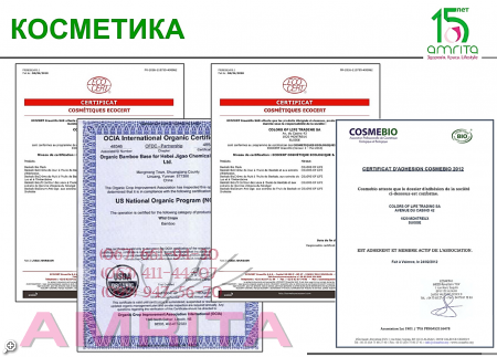 Соответствует категории «натуральная косметика» согласно Европейскому стандарту Ecosert (Eco : Organic Certificate Components).