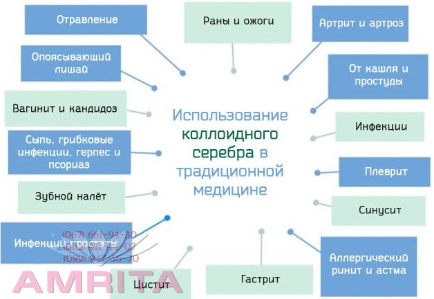 Однако форма выпуска этого препарата (порошок) создавала определенные трудности в его применении. Фирмой "Амрита" налажен выпуск коллоидного серебра в флаконах 50 мл. в жидкой форме. Коллоидное серебро - натуральный антибиотик
