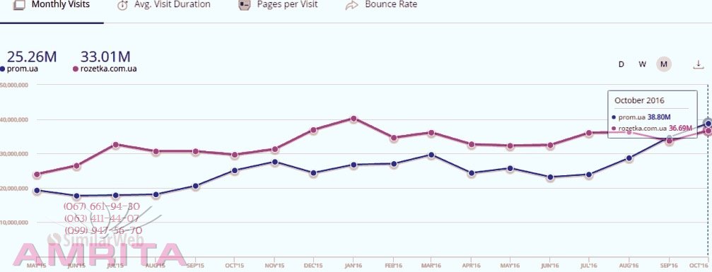 И новость недавно взбудоражившая интернет предпринимателей в Украине, заинтересовала аналитиков . Специалисты аналитического центра: "Первый социальный сайт amrita.net.ua решили проверить горячую новость. Вот что мы нашли в независимых интернет изданиях, на просторах рунета: По обновленным данным интернет-аналитики, маркетплейс Prom.ua обошел по трафику самый популярный в Украине интернет-магазин Rozetka. Отток онлайн-покупателей в маркетплейсы становится подтвержденным трендом. «Встречное движение» показателей площадки началось в середине лета: на фоне небольшого падения трафика «Розетки» маркетплейс Prom.ua показывал стабильный рост. В сентябре показатели сравнялись. В октябре расклад сил в украинском е-commerce изменился: 38,80 млн посетителей на Prom.ua, на два миллиона меньше у «Розетки»: