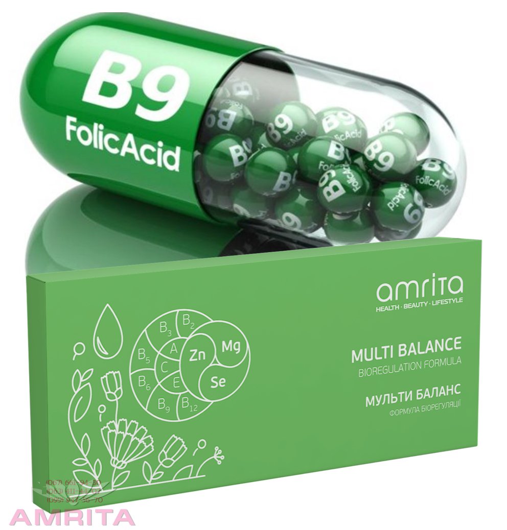 В 1941 году зарубежным учёным удалось выделить из зелёных листьев шпината водорастворимый витамин В9, получивший название фолиевая кислота (от латинского «folium», что в переводе означает «лист»). Свой по крови Современная медицина признаёт фолиевую кислоту жизненно важным для нашего организма витамином. Участвуя в образовании эритроцитов, лейкоцитов и тромбоцитов, он регулирует кроветворение, а значит, защищает организм от анемии. Кроме того, этот витамин также необходим для нормальной работы центральной нервной и иммунной систем, печени, желудочно-кишечного тракта. А ещё фолиевая кислота способна оберегать наш организм от сердечно-сосудистых недугов: стенокардии, инфаркта, инсульта. Ведь витамин В9 (правда, не один, а в содружестве с витаминами В6 и В12) может успешно противостоять одному из виновников возникновения заболеваний сердца - гомоцистеину. Вперёд на врага! Гомоцистеин не содержится в продуктах питания, а образуется из незаменимой аминокислоты метионина в результате сложных процессов, происходящих в организме. В норме этот «вредитель» существует недолго, вовлекаясь в ход дальнейших превращений под воздействием фолиевой кислоты и витаминов В6 и В12. Но если этих защитников не хватает, молекулы гомоцистеина сохраняются дольше отведённого природой срока, повреждая стенки кровеносных сосудов. Накапливаясь, гомоцистеин разрыхляет стенки кровеносных сосудов, тем самым облегчает отложение на них излишков холестерина, из которых образуются атеросклеротические бляшки, выпячивающиеся в просвет сосудов и затрудняющие кровоток. Изъеденные атеросклерозом сосуды доставляют всё меньше кислорода, витаминов и питательных веществ к органам и тканям. В тех местах, где сосуды наиболее узкие, атеросклеротическая бляшка может просто-напросто перекрыть кровеносное русло. В этом случае разовьётся инфаркт или инсульт. Уберечь организм от вредного гомоцистеина как раз и под силу витаминам группы В под предводительством фолиевой кислоты. Кто в зоне риска Недостаток фолиевой кислоты чаще всего встречается у тех, в чьём рационе питания не хватает продуктов, содержащих животные белки, а также свежих овощей и фруктов. Дефицит витамина может также возникнуть при заболеваниях желудочно-кишечного тракта, болезнях кроветворной системы, нарушениях функции щитовидной железы. Проблема может грозить и тем, кто длительно и бесконтрольно принимает некоторые лекарства, например сульфаниламидные препараты. Злоупотребляющие алкоголем также рискуют заработать дефицит этого жизненно важного для организма вещества. Основные признаки недостатка фолиевой кислоты - анемия (низкий уровень железа), быстрая утомляемость, поражение слизистой оболочки рта, проблемы с желудком и кишечником, снижение иммунитета. От дефицита витамина В9 поможет Amrita Multi Balance, 30 табл.