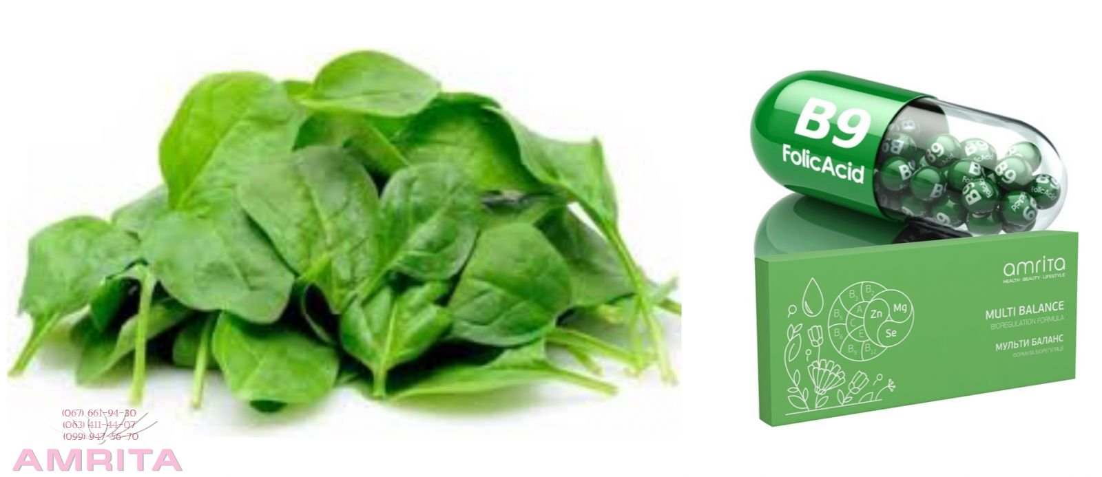 Этот витамин особо рекомендуется во время беременности. Ежедневная доза фолиевой кислоты во время беременности составляет 400 мг. Результаты многолетних тестов показали, что длительный прием витамина В9 (фолиевой кислоты) позволяет не только избавиться от многих осложнений во время беременности и родов, но и полезен для здоровья женского организма вплоть до наступления менопаузы. Так, ученые выяснили, что употребление фолиевой кислоты помогает избежать появления проблем с позвоночником у ребенка, способствует правильному формированию нервной системы плода. Кроме того, этот витамин незаменим при лечении послеродовой депрессии, поэтому его по праву считают самым главным витамином для женщин. У женщин недостаток фолиевой кислоты может привести к отсутствию нормальной реакции репродуктивных органов на эстроген. В подростковом возрасте фолиевая кислота корректирует половое созревание девушки, помогает при акне. Необходим этот витамин и мужчинам. Фолиевая кислота работает в одной упряжке с тестостероном, способствуя созреванию спермы. Чтобы у юноши развивались нормальные половые характеристики вроде голоса, бороды и увеличения простаты для выработки семени, ему ежедневно требуется определенное количество фолиевой кислоты. Основные источники фолиевой кислоты: бобовые, салат, шпинат, капуста, зеленый лук, зеленый горошек, фасоль, соя, свекла, морковь, томаты, мука грубого помола и хлебобулочные изделия из этой муки, гречневая и овсяная крупы, пшено, дрожжи. Из продуктов животного происхождения богаты фолиевой кислотой печень, почки, творог, сыр, икра, яичный желток. Однако необходимо ежедневно съедать огромное количество нужных продуктов, чтобы восполнить содержание этого витамина в организме. Лучший поставщик на сегодня витамина В9, есть Мультибаланс, сбалансированный комплекс витаминов и минералов, компании Амрита. Диетическая добавка "Amrita Multi Balance" – это сила природных витаминов, минералов и растений всего в 1 таблетке