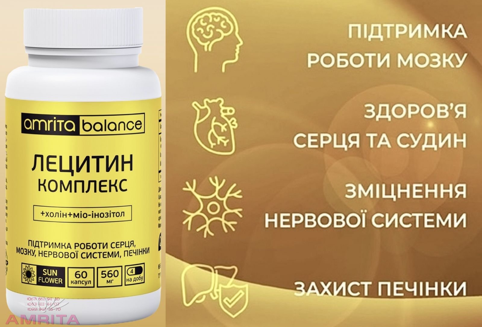 , якщо можливо) ===== --> Лецитин комплекс + холін + міо-інозитол — підтримка мозку, нервів, печінки та серця | Amrita ЛЕЦИТИН КОМПЛЕКС + холін + міо-інозитол Підтримка мозку, нервової системи, серця і печінки в одній формулі Лецитин з холіном і міо-інозитолом працює там, де потрібна щоденна витривалість.... Подробнее →