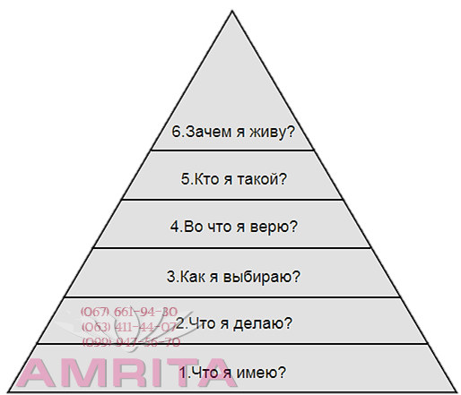 Особенность модели в том, что для каждого из уровней пирамиды ответ на вопрос «Почему это так?» лежит на один уровень выше. Нижний уровень пирамиды, уровень Вашего быта, Вашей повседневности, отвечает на вопрос «Что я имею?» Это касается и Ваших финансов, и Вашей работы или бизнеса, и Вашего дома, Вашей семьи, Вашего круга общения и т.п. Если же Вы зададитесь вопросом «Почему я имею то, что имею?», за ответом придётся обратиться на второй уровень, где находятся Ваши действия. Этот уровень отвечает на вопрос «Что я делаю?» - и очевидно, что от того, что Вы делаете изо дня в день, очень сильно зависит то, что Вы имеете в итоге.