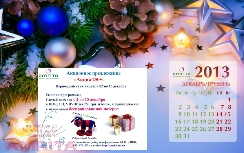 Рады сообщить, что с 1 по 15 декабря 2013 года для Вас действует специальное акционное предложение «250+».