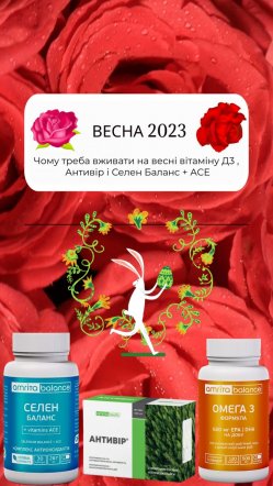 Фахівці радять вживання вітаміну Д і Селен Баланс + АСЕ, навесні, щоб уникнути таких захворювань як: грип, застуда, загострення сезонних алергій, хронічні захворювання. Адже через зниження кількості натуральних вітамінів у раціоні протягом зими імунітет слабшає.