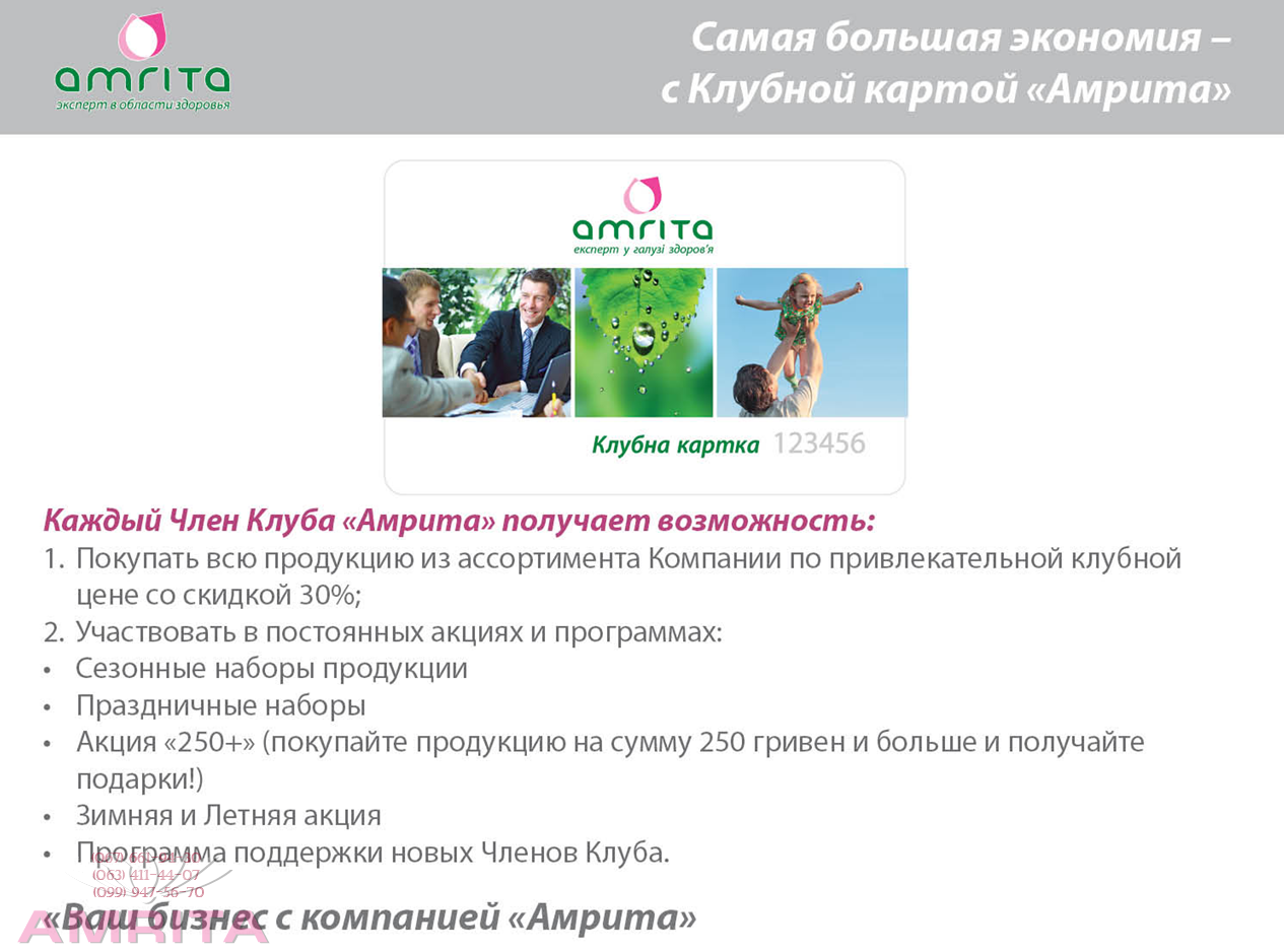 И с этого момента вы становитесь членом клуба и можете экономить с компанией Амрита:
