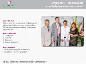 Поддержать людей в этом стремлении - главная цель, ради которой была основана и развивается Компания «Амрита».15 лет назад Винниками: Татьяной Дмитриевной, Николай Андреевичем , Андреем Николаевичем и Кожаровым Сергеем с Любовью была создана компания "Амрита"."Мы отбираем лучшее - и делаем его доступным - стало целью , а работа консультантов компании "Амрита"- с Любовью к Людям подарила здоровье более 1 000 000 потребителей !Быть естественно здоровым и успешным - основное стремление всех, кто хочет реализовать себя в современном мире. Компания Amrita- объединяет лучшее и делает его доступным.Продукция Компании Амрита сегодня- это более 300 натуральных продуктов для красоты и здоровья и 13 лет их успешного применения на рынке Украины. В ассортименте Компании более 100 эксклюзивных продуктов, прошедших клинические исследования, которые доказали их эффективность.Главный принцип компании - работа с Любовью для Блага и Здоровья людей.Компанию «Амрита» можно уже назвать экспертом в области здоровья и красоты. Ведь если человек здоровый, успешный и красивый - это залог счастья.А с продукцией «Амрита» - это сделать легко.Вы Выбираете лучшее! А Мы с Любовью позаботимся, чтобы покупка доставила вам удовольствие.Уважаемые Партнеры!С 1 октября 2020 в ГК «Амрита» стартовала новая Партнерская программа.