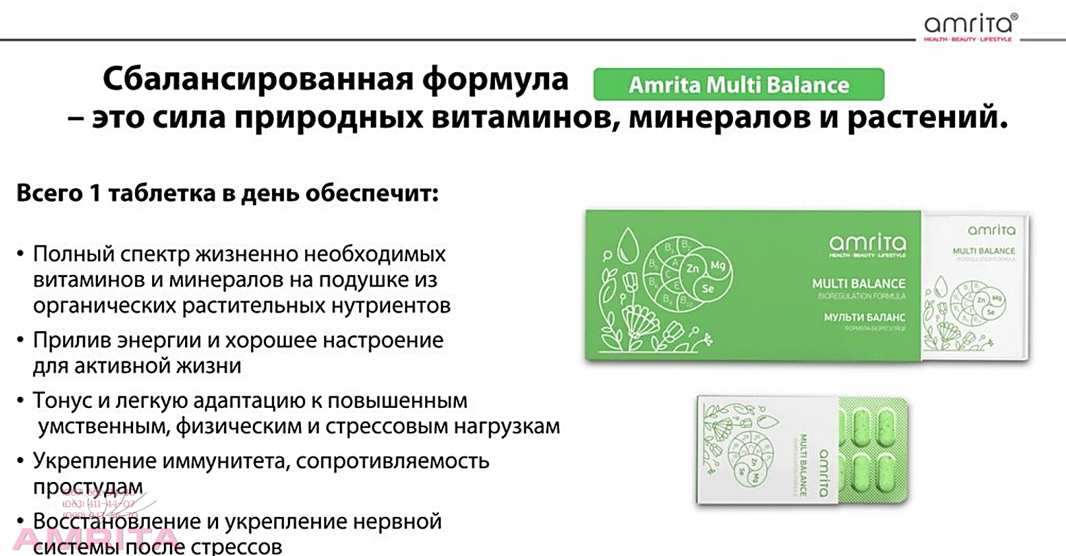 • Содержит необходимый набор витаминов, минералов, микроэлементов для поддержания защитной системы и здорового функционирования организма.