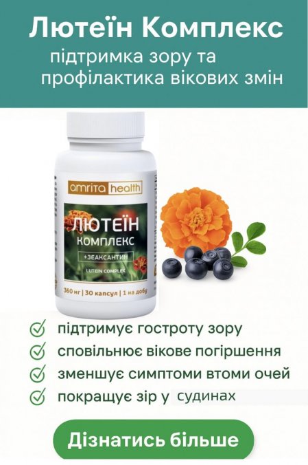 Лютеїн – природний каротиноїд, що концентрується в сітківці, захищає макулу від пошкоджень та синього світла.