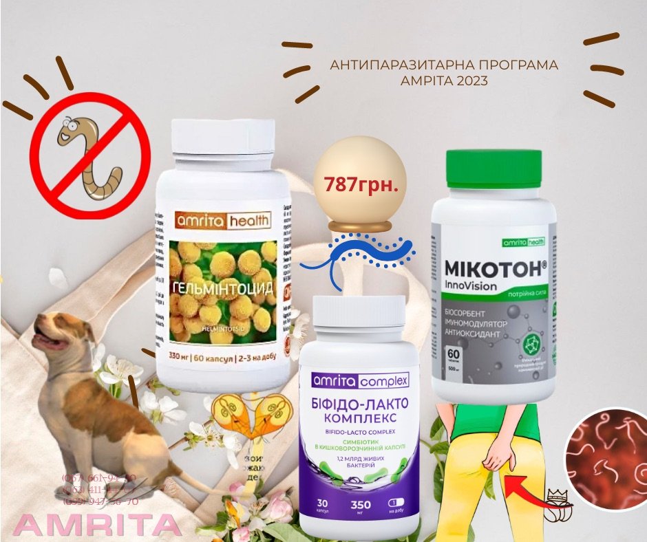 Існує безліч хіміопрепаратів для лікування аскаридозу, але вони несуть побічні ефекти та послаблюють організм.Продукція компанії Амріта натуральна і не має побічних ефектів.Експрес комплекс для очищення від паразитів включає:Комплекс розрахований на Курс 6 тижнів з перервою на 1 тиждень після трьох тижнів прийому. Через 3-4 місяці курс повторити.Починати прийом за 3-4 дні до повного місяця.1. місяц Гельминтоцид+ микотон2. місяц Бифідо Лакто форма.