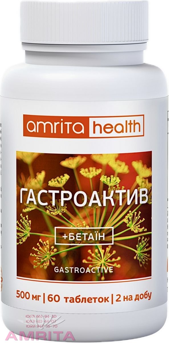 Гастроактив + бетаїн, 60 табл. помогает улучшить состояние при гастрите, язве желудка, 12-перстной кишки