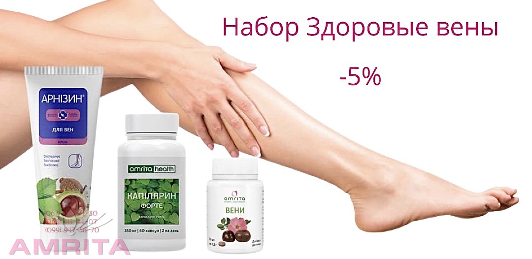 Акционный набор «Здоровые вены» укрепит вашу кровеносную систему и позволит чувствовать себя прекрасно в любое время дня и ночи. А предлагаемая скидка позволит сэкономить и побаловать себя чем-то прохладительным. И не забудьте о пожилых родственниках - навестите их и преподнесите в качестве подарка набор уникальных фитопродуктов от «Амриты».Комплексный набор продуктов рекомендован в составе оздоровительных программ при варикозном расширении вен и профилактике заболеваний сердца и сосудов.- Покупайте в комплексе: «Вены», 60 табл. и «Капиллярин», 60 табл.