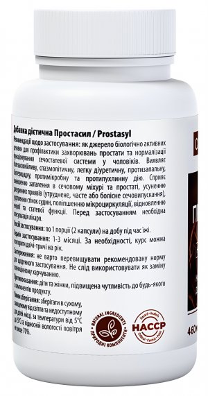 «Простасил калган + женьшень» от Amrita – действенная многокомпонентная формула, содержащая 12 активных компонентов для профилактики заболеваний простаты и нормализации функционирования мочеполовой системы у мужчин. Оказывает болеутоляющее, спазмолитическое, легкое диуретическое, противовоспалительное, бактерицидное, противомикробное и противоопухолевое действие. Способствует уменьшению воспаления в мочевом смеси и простате, устранению дизурических проявлений, укреплению стенок сосудов, улучшению микроциркуляции, восстановлению энергии и половой функции.Рекомендации по применению: по 1 порции (2 капсулы) в день во время еды.Срок применения: 1-3 месяца. При необходимости курс можно повторить два-три раза в год.