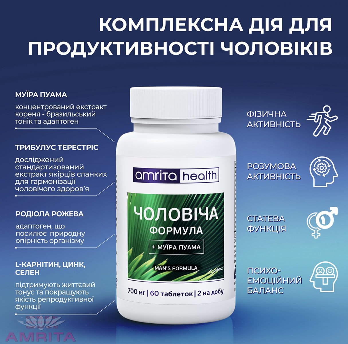 - Комплекс цинка, L-карнитина и селена в составе «Мужской формулы» Amrita помогает нормализовать уровни половых гормонов, улучшить количественные и качественные показатели спермограммы, усилить физические и умственные возможности мужчин.