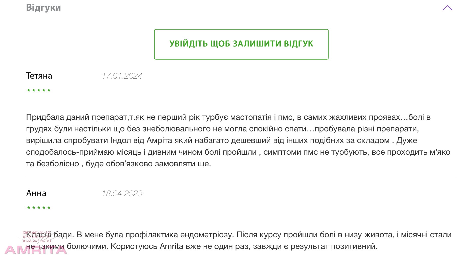 Amrita ІНДОЛ + БРОКОЛІ негормональний комплекс природних біологічно активних речовин для профілактики розвитку хвороб репродуктивної і статевої системи у чоловіків і жінок, пов’язаних з порушенням гормонального балансу (міоми, ендометріоз, мастопатія, порушення менструального циклу, захворювання простати тощо).Amrita ІНДОЛ + БРОКОЛІ сприяє зниженню ризику розвитку доброякісних та злоякісних пухлин молочних залоз і яєчників у жінок та передміхурової залози у чоловіків, шляхом блокування внутрішніх гормональних механізмів, які активують процес патологічного поділу клітин.Amrita ІНДОЛ + БРОКОЛІ виявляє потужні детоксикуючі, противірусні та антиоксидантні властивості. Допомагає організму в боротьбі зі збудниками вірусних інфекцій, сприяючи сповільненню розвитку папілломатозних утворень. Уповільнює процеси старіння всіх клітин організму.