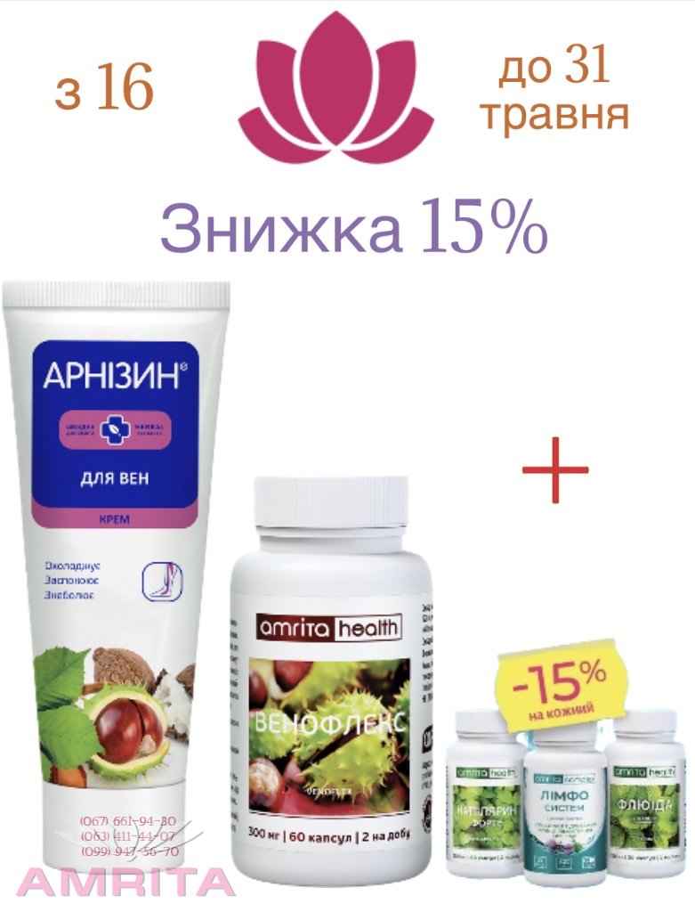 «Арнізин крем для вен» сприяє нормалізації функціонування вен нижніх кінцівок і синтезу колагену, покращує мікроциркуляцію в тканинах. Рекомендований при захворюваннях вен: венозна недостатність, варикоз, тромбофлебіти, для місцевого застосування.Купуючи набір Зорів ые ніжки, ви можете купити зі знижкою 15%: