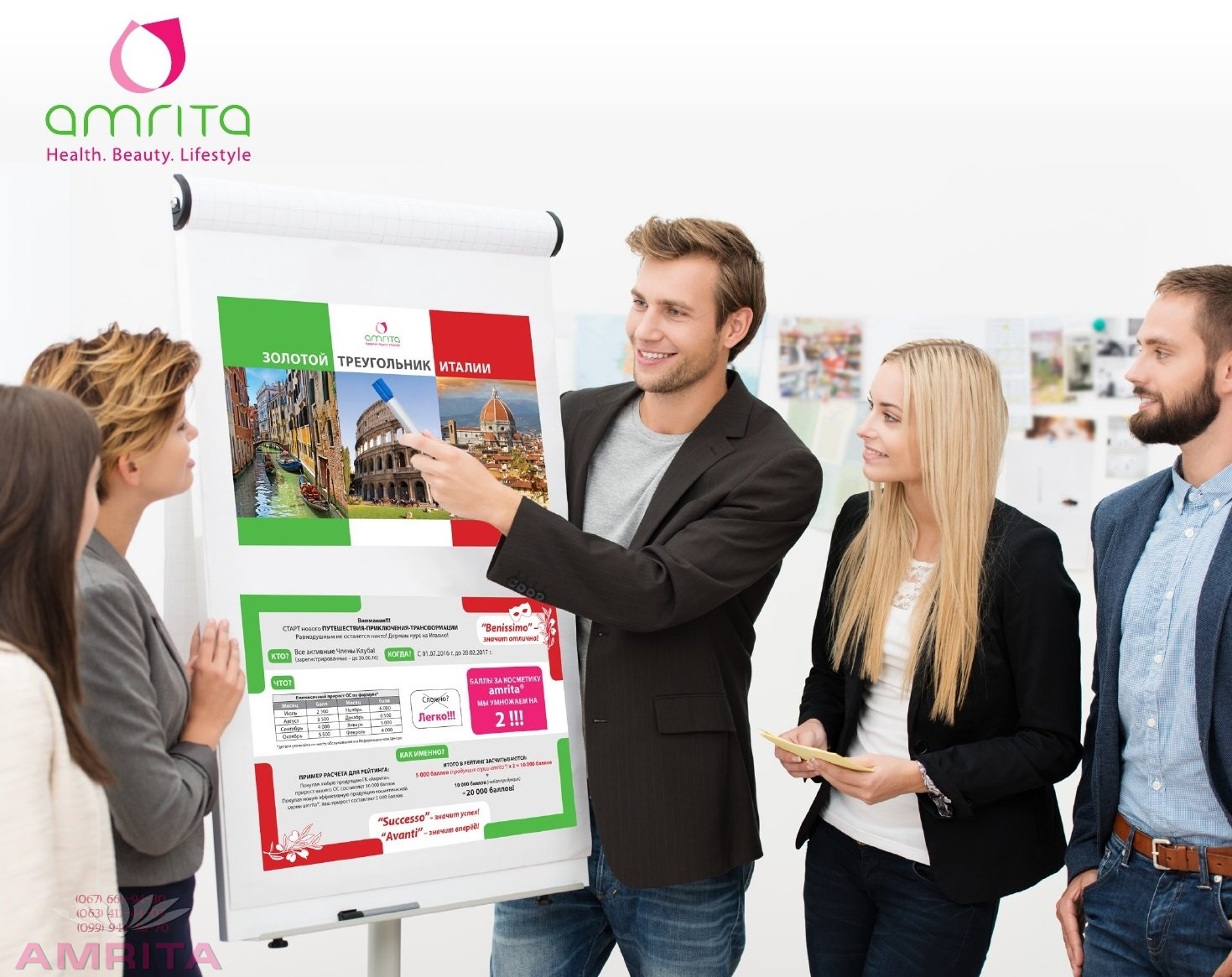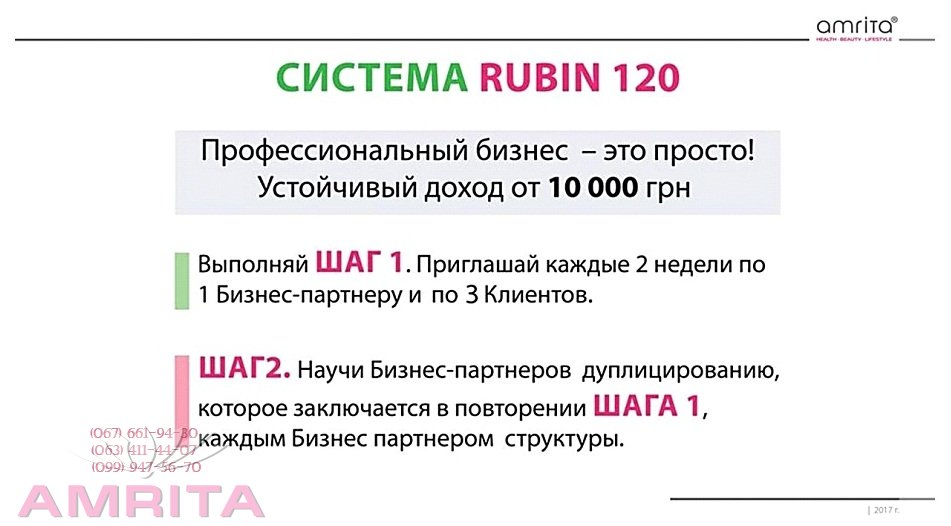 Подробнее работа, условия, достижения, вознаграждения описаны в МАРКЕТИНГ ПЛАНЕ ГК АМРИТА.