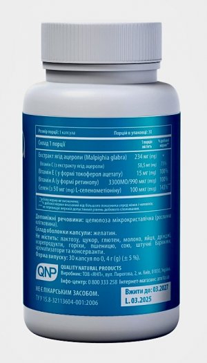 Активные компоненты: селен(из-50мг. L-селенометионина), витамины А, С, Е