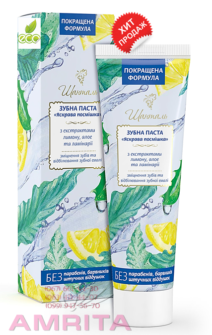 Рекомендуется чистить зубы как минимум в течение 2-3 минут два раза в день - утром и вечером – новой зубной пастой «Яркая улыбка», которая укрепляет и мягко отбеливает эмаль Ваших зубов.Производится на новых заводских мощностях по последнему слову косметической отрасли и соответствует международным стандартам производства и контроля качества "Эко Органик".Нашим клиентам мы предлагаем абсолютно новую формулу: высокая концентрация натуральных ингредиентов.Напоминаем Вам, что для комплексного оздоровления полости рта и профилактики заболеваний рекомендуется использовать уникальный продукт - Ополаскиватель для полости рта «Шанталь» ® , который не содержит вредных веществ: спирта и фторида.