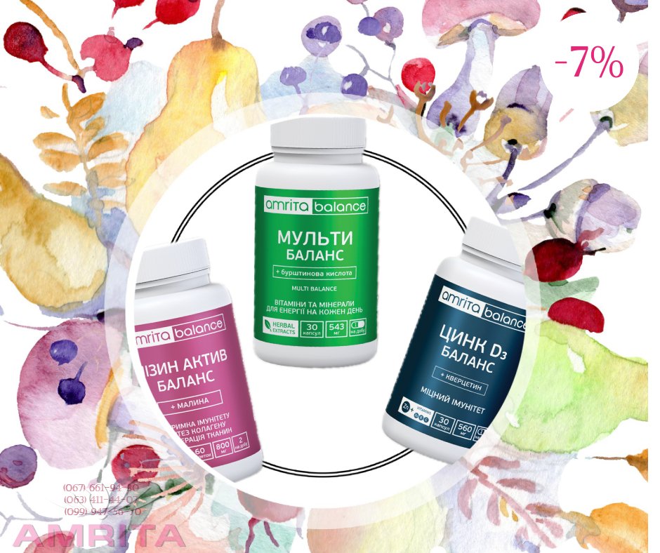 Базовый состав комплекса: «Мульти Баланс + янтарная кислота», «Цинк D3 баланс + кверцетин», «Лизин Актив баланс + малина»
