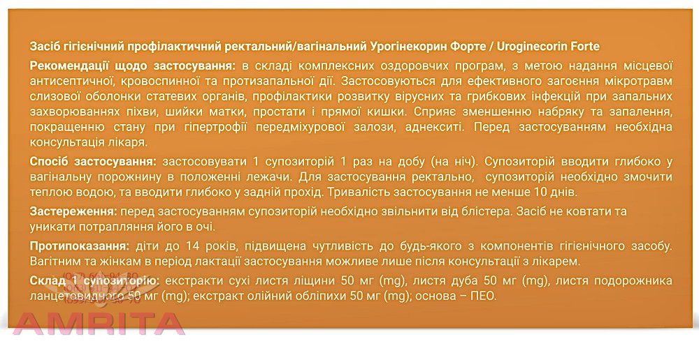 Засіб гігієнічний профілактичний ректальний/вагінальний Урогінекорин Форте / Uroginecorin Forte