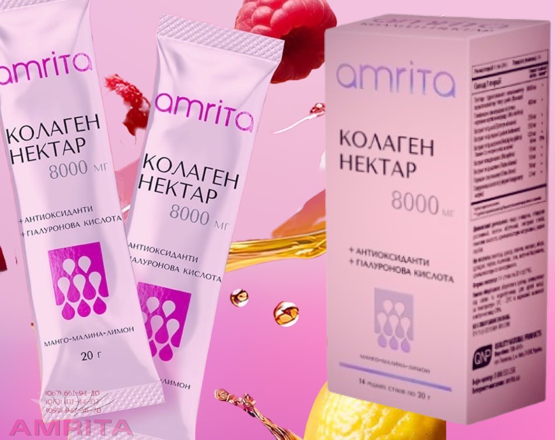 Колагеновий нектар 8000 мг від Amrita — це комплексна anti-age формула, що підтримує молодість шкіри, блиск волосся, міцність нігтів і рухливість суглобів.