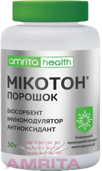 "Микотон Амрита" - это комплексный избирательный биосорбент для очистки организма. Он способствует выведению из организма эндо- и экзотоксинов, радионуклидов, обладает антиоксидантным действием, незаменим в составе комплексных программ при аллергических заболеваниях, улучшает пищеварение.На протяжении 15 лет в клиниках России, Украины и за рубежом проходили испытания уникальной разработки Украинских ученых, препарата Микотон. Аналогов в мире нет. Производится в Украине на Немецко- Украинском предприятии.Микотон - это биологически активная добавка на основе натуральных грибных биополимеров: хитина, глюканов и меланинов.