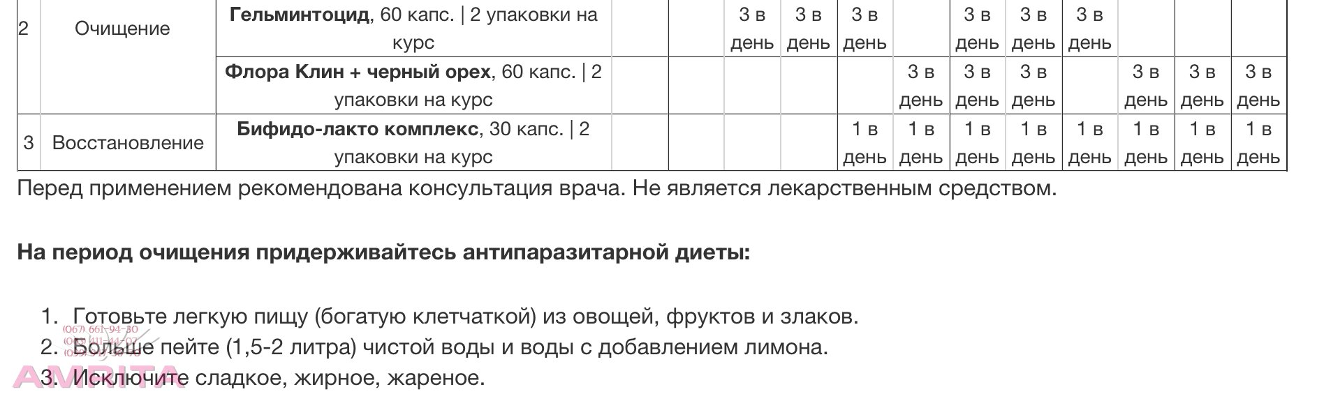 Принимаем 3 недели. Делаем перерыв 1 неделя и опять принимаем 3 недели.- На 4 неделю делаем перерыв в приеме продукта Гельминтоцид и подключаем с 3 недели прием Бифидо лакто форма. Принимаем без перерыва 8 недель до окончания программы.