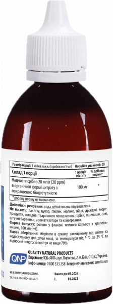 Состав: водный раствор коллоидного серебра (20 мг / л).