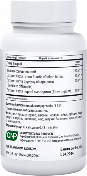 * поддерживает постоянный сосудистый тонус.Активные компоненты: лецитин, экстракт листьев гинкго билоба сухой, экстракт цветов донника лекарственного сухой, экстракт листьев черной смородины в правильной терапевтической дозировке.