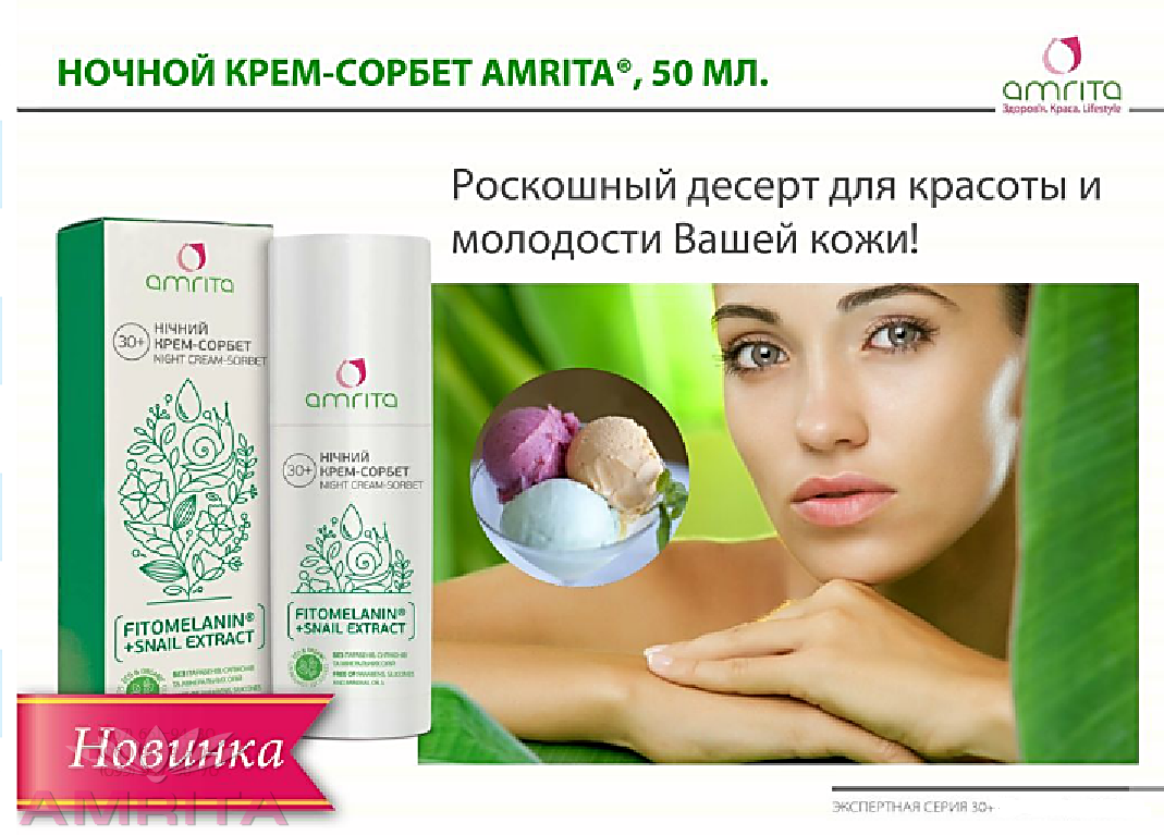 Утром, после сна с Ночным крем-сорбетом amrita® кожа выглядит удивительно свежей и упругой, приобретает замечательный сияющий тон.