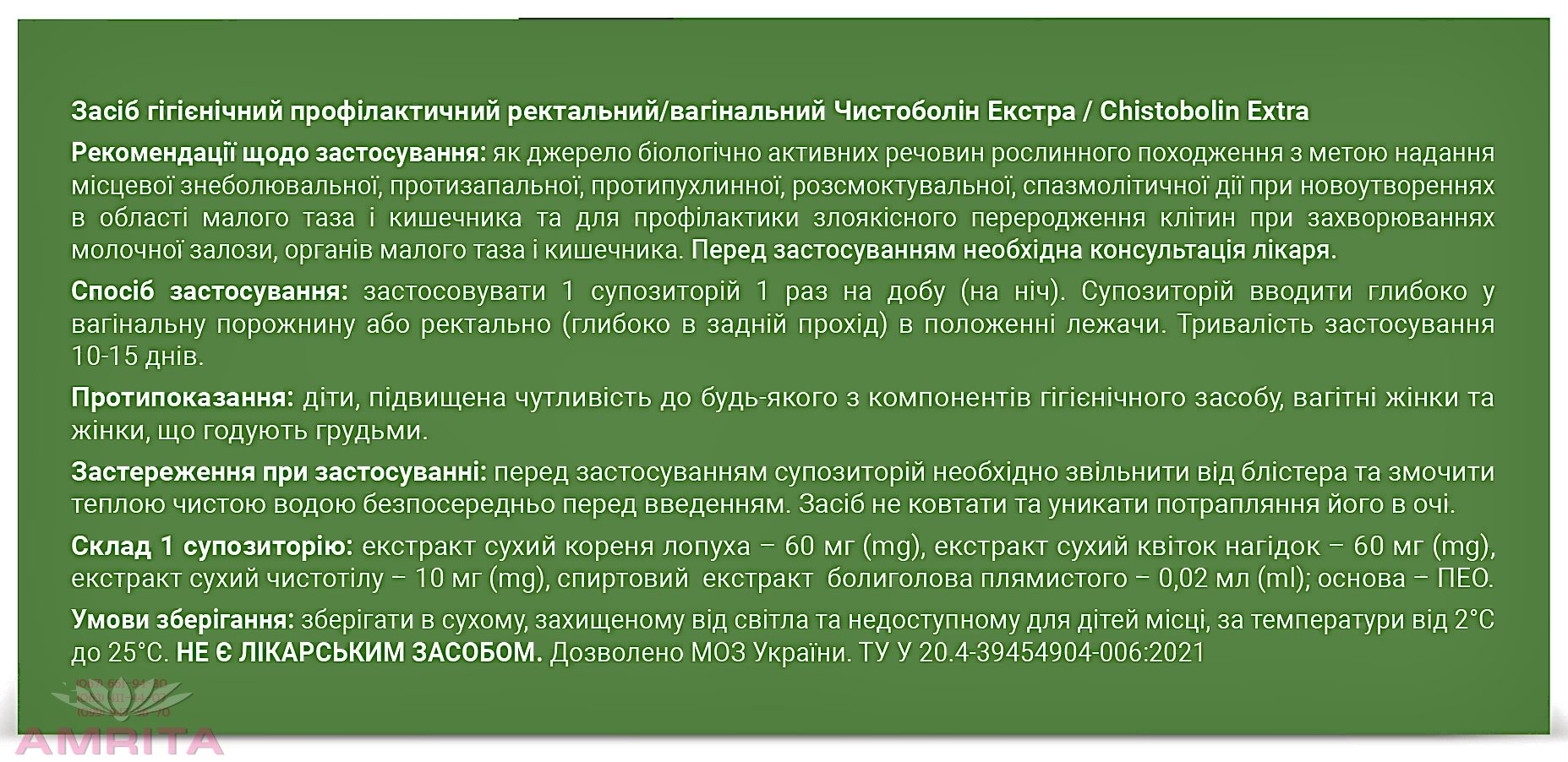 "Чистоболин Экстра" -фито свечи для использования в новообразованиях в области таза и для профилактики новообразований