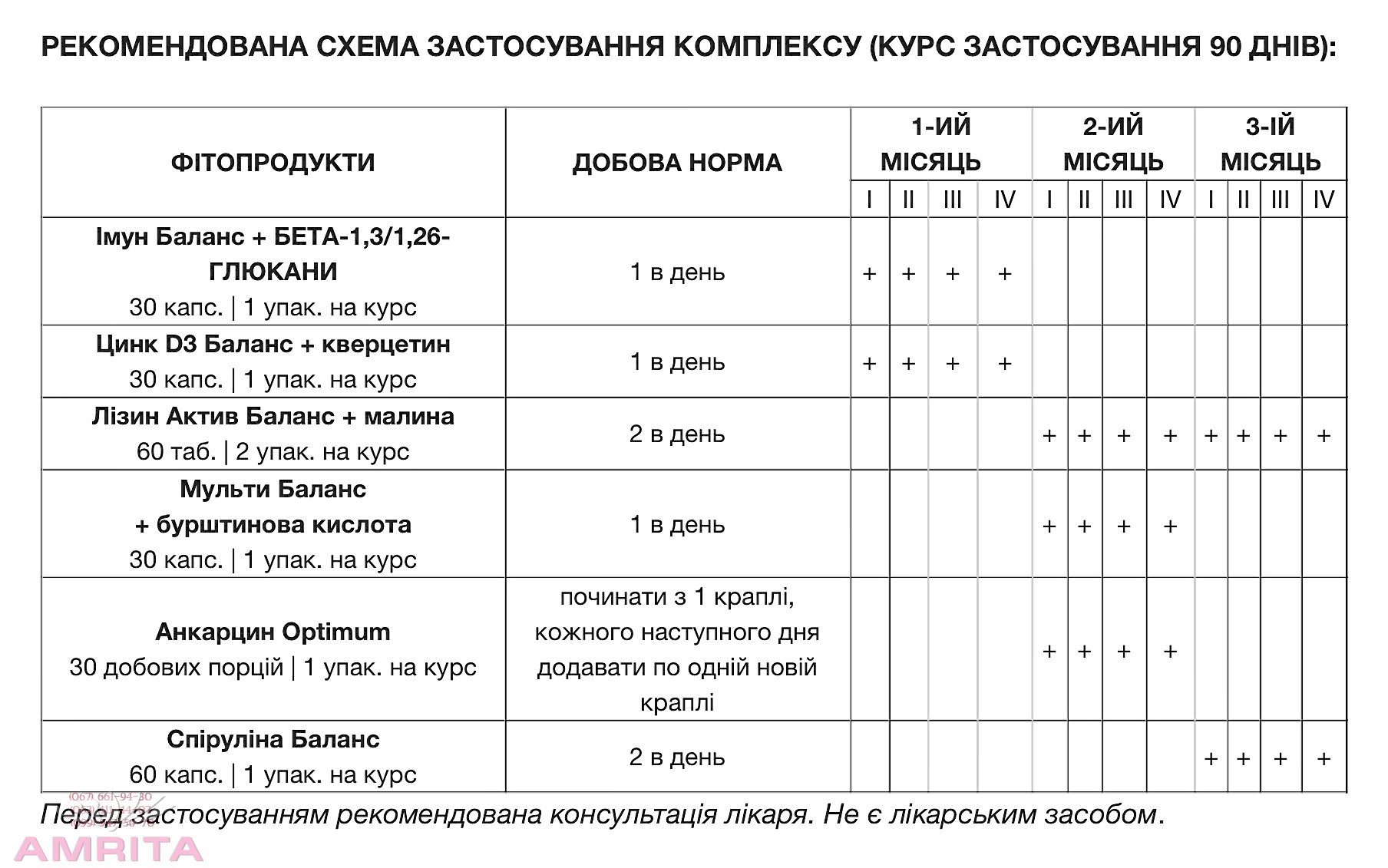РЕКОМЕНДОВАНА СХЕМА ЗАСТОСУВАННЯ КОМПЛЕКСУ (КУРС ЗАСТОСУВАННЯ 90 ДНІВ):