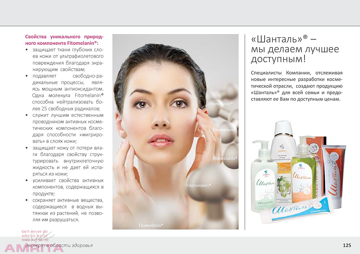 -"Ноу-Хао"- продукции марки "Амрита"- это "фитомеланин"- основа косметической продукции- полученный с березового гриба "Чага". - "Фитомеланин" способен: оказывать фото- и радио протекторное действие. Эффективно защищает кожу от повреждающего воздействия УФ-лучей разной длины волны - А, В, С. Антиоксидант и цитопротектор.