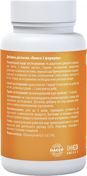 «ОМЕГА 3 формула» - природная форма омега-3 жирных кислот с высокой концентрации докозагексаеновой (ДГК) и эйкозапентаеновой полиненасыщенных жирных кислот .