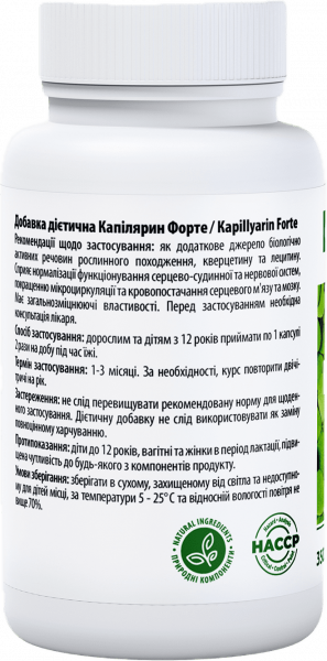 Диетическая добавка «Капиллярин Форте»:- способствует снижению уровня артериального давления;