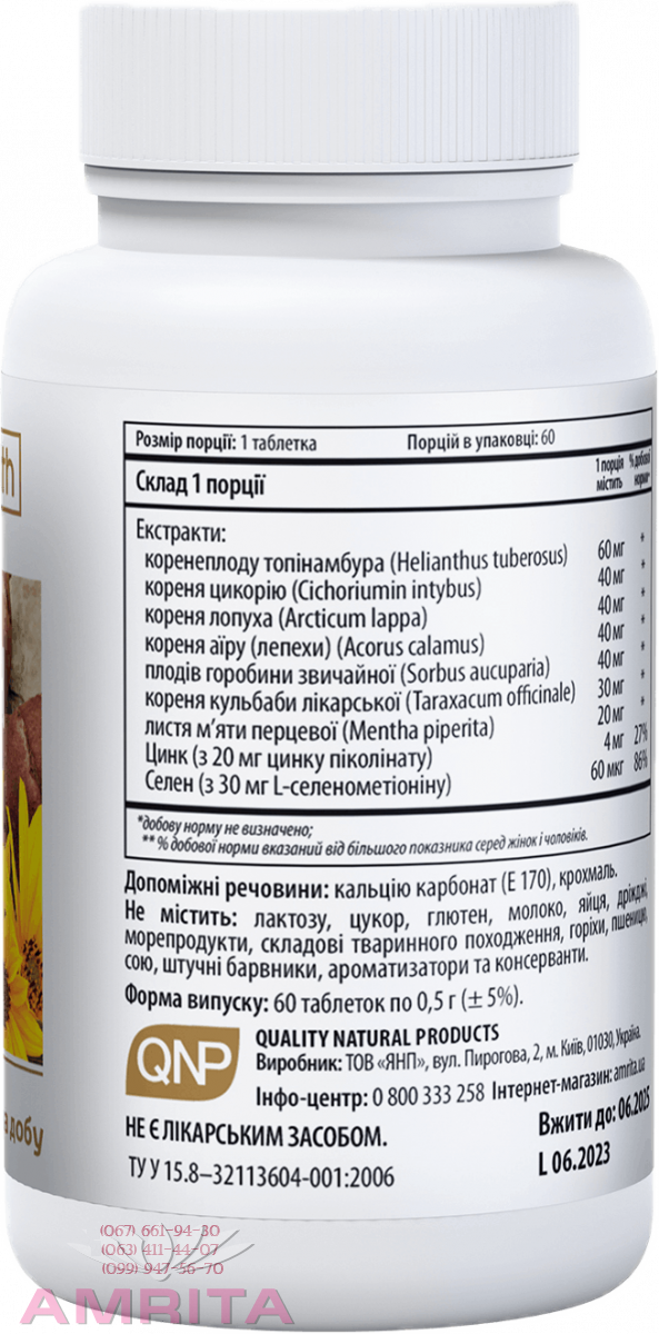 ✅Состав 1 таблетки: экстракты корнеплода топинамбура – 60 мг, корня цикория – 40 мг, корня лопуха – 40 мг, корня аира – 40 мг, плодов рябины обыкновенной – 40 мг, корня одуванчика – 30 мг, листьев мяты перечной – 20 мг, цинка пиколинат – 20 мг (соответствует 4 мг иона цинка), селенометионин – 10 мг (из неактивных дрожжей GoldCell, соответствует 25 мкг иона селена). Вспомогательные вещества: кальция карбонат (Е 170), крахмал.