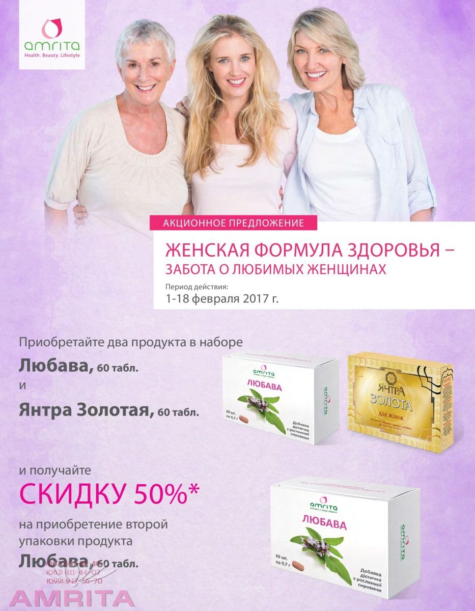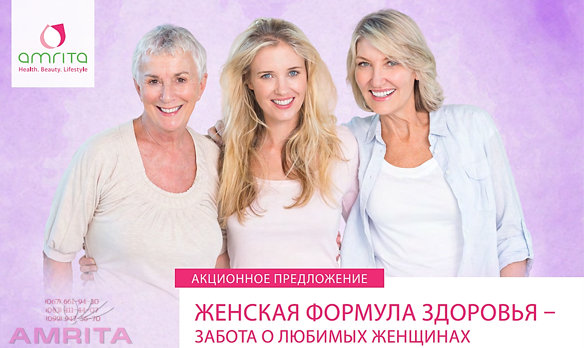 Женское здоровье - вещь деликатная. Невозможно полюбить себя, не научившись беречь собственное здоровье, заботиться о себе и наблюдать за своим организмом. Забота о женском здоровье невозможна без соблюдения элементарных гигиенических норм и правил. Образ жизни современной женщины становится все активней: увеличилась возможность реализации себя в профессиональной сфере, растущий темп жизни заставляет думать и двигаться в два раза быстрее, фитнес-центры, предлагающие всевозможные курсы физических занятий, становятся доступнее по цене и расположению. Многие вещи, делающие женщину привлекательной, оказывают негативные последствия на ее здоровье. Узкие тесные джинсы мешают нормальному кровообращению в органах малого таза. Короткая юбка и тонкие колготки приводят к переохлаждению и, как следствие, заболеваниям мочеполовой системы. Особого внимания заслуживает женская грудь. Каждый женщина должна периодически ее обследовать, ощупывать. Лучше всего это делать после принятия ванны или душа. В позиции стоя, необходимо поднять правую руку вверх, а левой производить манипуляции: ощупывающими движениями исследовать всю правую грудь, двигаясь по кругу. Подмышечная впадина также подлежит исследованию. Тоже самое проделать с левой грудью. Эти же манипуляции необходимо провести в позиции лежа. Если прощупываются какие-то образования, то это повод обратиться к врачу. Как бы хорошо ни чувствовала себя женщина, пренебрегать посещением гинеколога не стоит. Все-таки женская половая система скрыта от глаз, и только специалист сможет оценить ее истинное состояние. Согласно рекомендациям, посещать сугубо женского врача следует раз в полгода. Если же имеются неприятные симптомы: зуд, выделения или раздражение - обратиться к специалисту требуется немедленно. Компания Амрита, заботясь о женском здоровье, в то время когда мороз за окном сковывает чувства, предлагает Вам : Акционное Предложение : Женская формула здоровья - забота о любимых Женщинах. Детальнее на сайте.