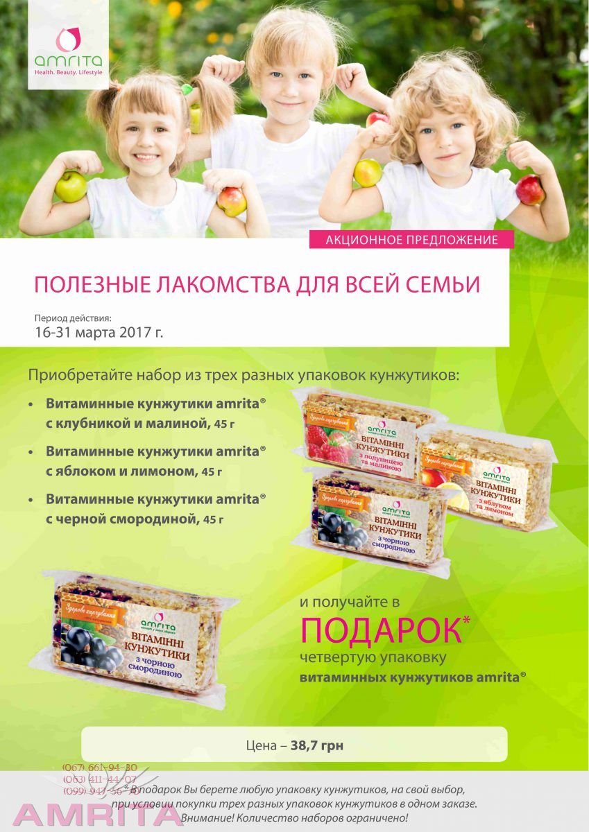 и получайте в ПОДАРОК* четвертую упаковку Витаминных кунжутикиов amrita® ,или, любую упаковку кунжутиков, на свой выбор, при условии покупки трех разных упаковок кунжутиков в одном заказе. Детальнее на сайте.