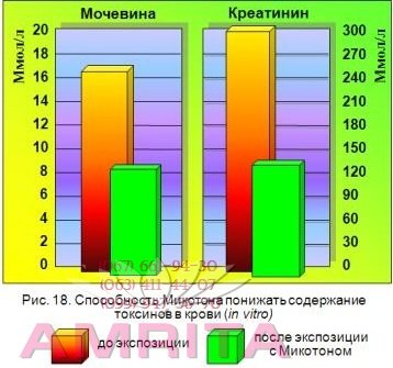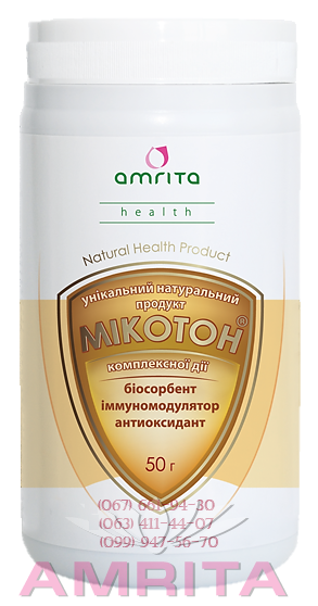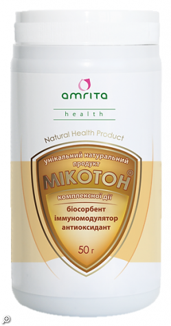 Як відомо, при застосуванні звичайних сорбентів через певний проміжок часу виникає дефіцит необхідних для організму мікро-та макроелементів, хітин не виводить важливі для організму речовини. Саме такими унікальними властивостями хітину пояснюється ефективність застосування «Мікотону» при порушенні роботи печінки, нирок, при харчових отруєннях і лікарських інтоксикаціях.Бета-глюкани, що входять до складу «Мікотону», – потужні природні речовини, що коригують імунітет людини.