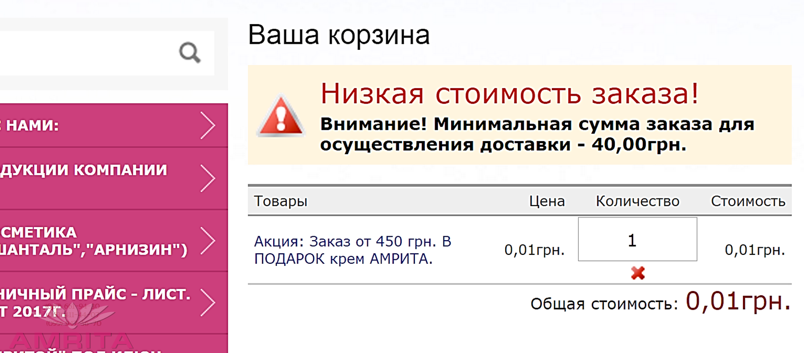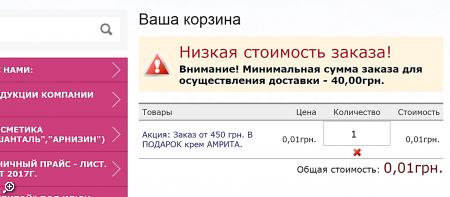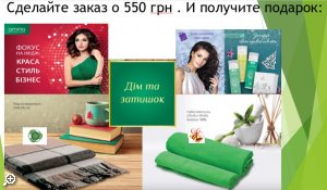 Пройдите по ссылке, и кликните по кнопке купить. Вы попадете в корзину: Вам необходимо наполнить корзину, что бы там было от 450 грн. продукции. И выберите продукцию-которая Вам понравилась, отправьте выбранные позиции в корзину и получите один из ХИТовых продуктов в подарок! * Спешите пока есть все 3 подарка и можно сделать выбор. ПОДАРКИ лимитированны. Детальнее на сайте.