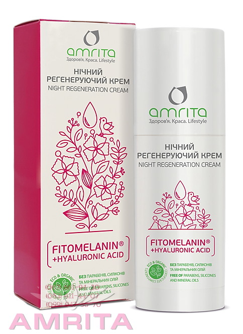 Экспертная формула FITOMELANIN®+ HYALURONIC ACID (двойная ночная доза) - основной действующий компонент для регенерации и восстановления тургора кожи лица.